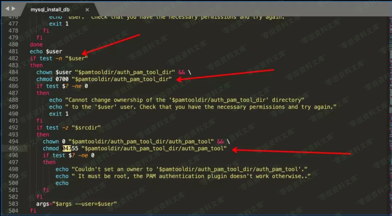 切换回root,在root权限下运行mysql_install_db脚本(触发修改chmod命令)