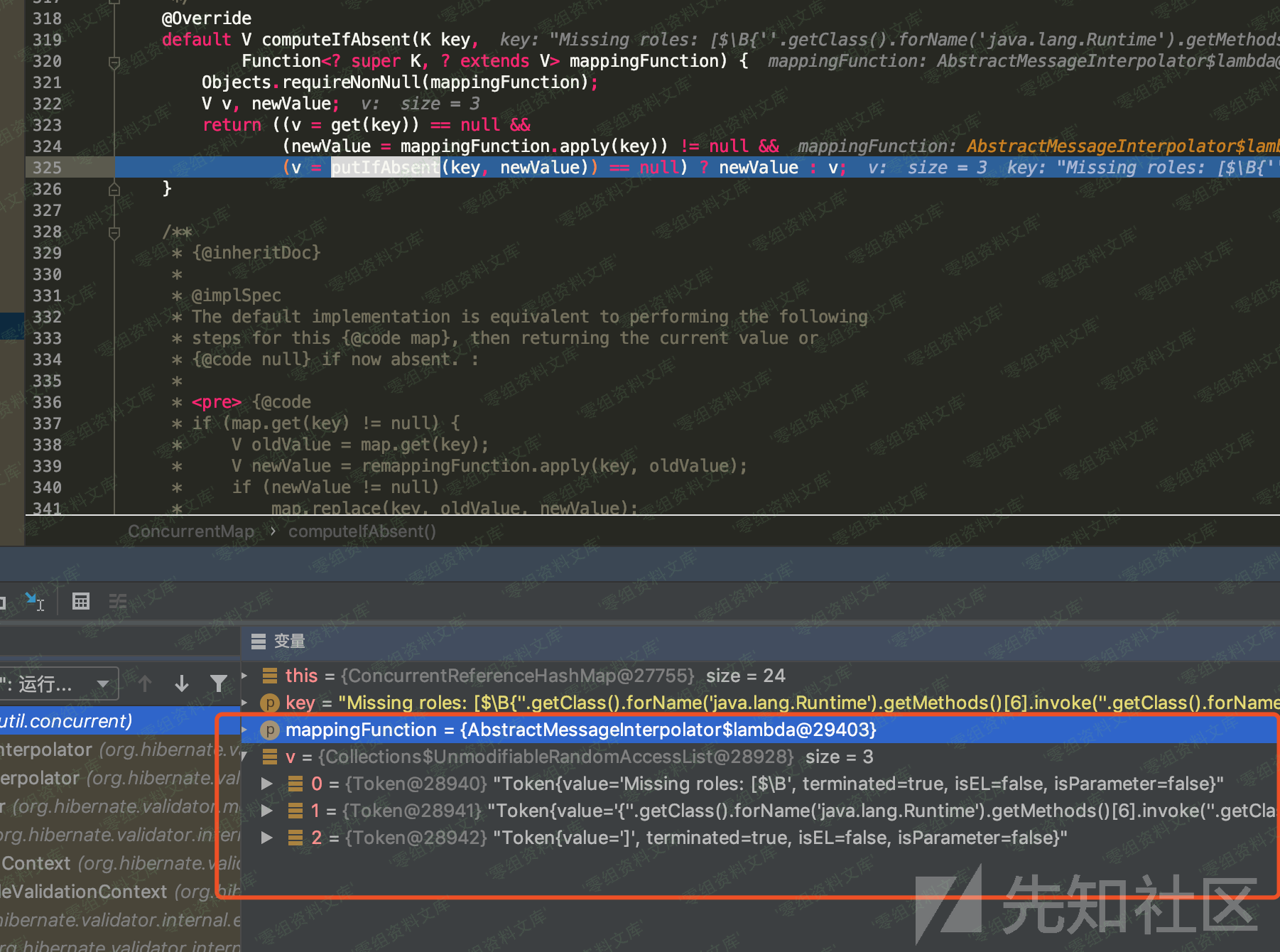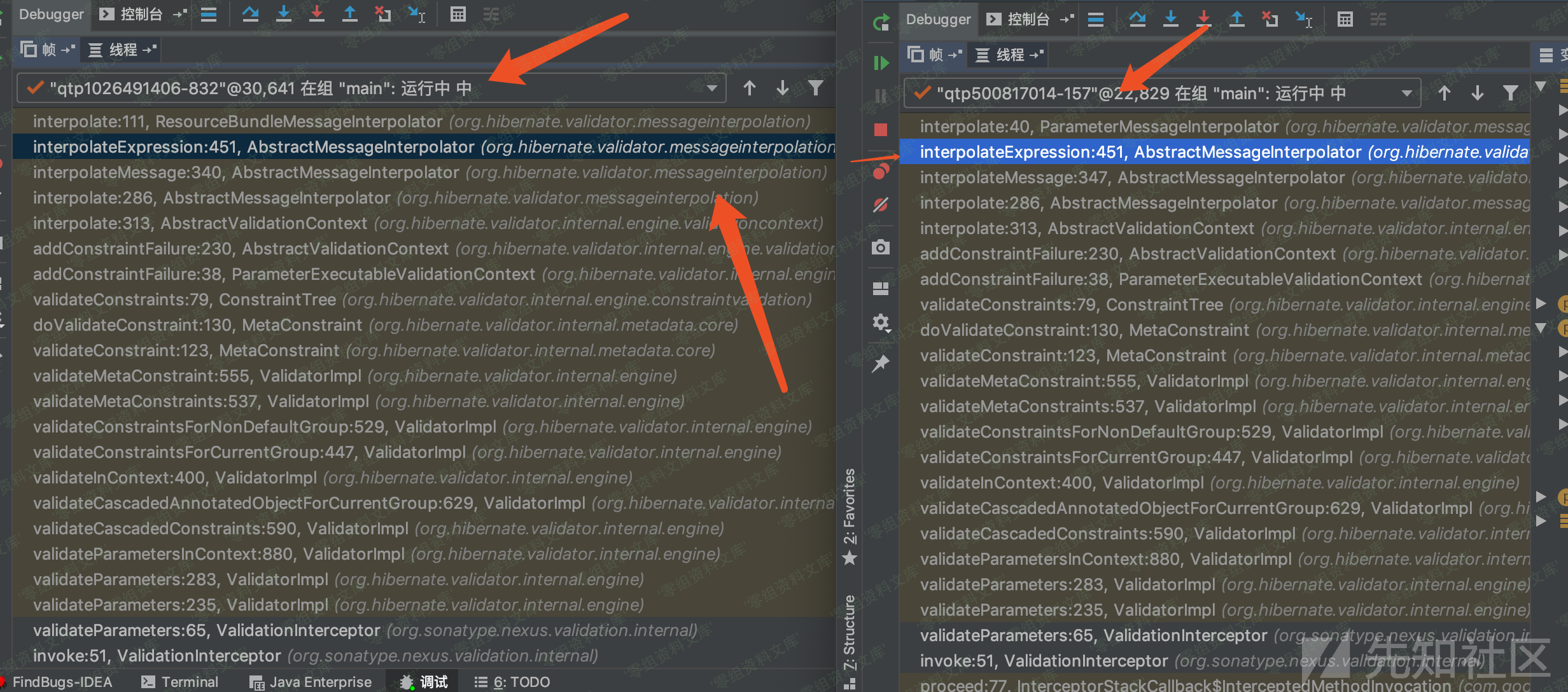 在我跟到/org/hibernate/validator/messageinterpolation/AbstractMessageInterpolator.class发现大致调用堆栈是差不多的