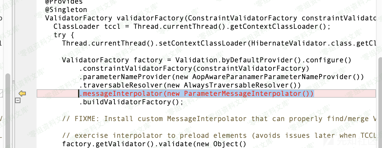 但是再往下就有区别的,3.21.0版本调用了/org/hibernate/validator/messageinterpolation/ResourceBundleMessageInterpolator.class@InterpolationTerm,而3.21.2版本调用的是/org/hibernate/validator/messageinterpolation/ParameterMessageInterpolator.class@InterpolationTerm,但是最开始的区别并不是这里,这两个类都是继承了AbstractMessageInterpolator,然后重写的public String interpolate(Context context, Locale locale, String term)方法不同,