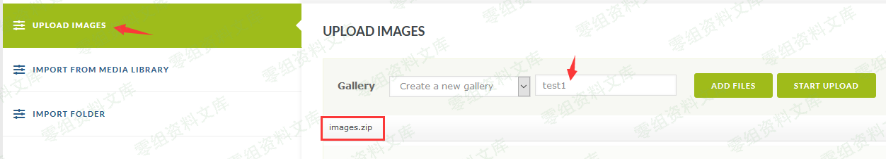 点击“Add Gallery / Images”然后上传zip压缩包。