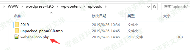 访问临时目录下的abc233.php文件即可在/wp-content/uploads目录下生成webshell。