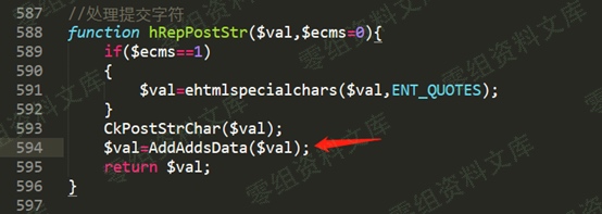 跟进AddAddsData函数,分析代码:如果没有开启magic_quotes_gpc函数,就使用addslashes函数对参数中的特殊字符进行转义处理
