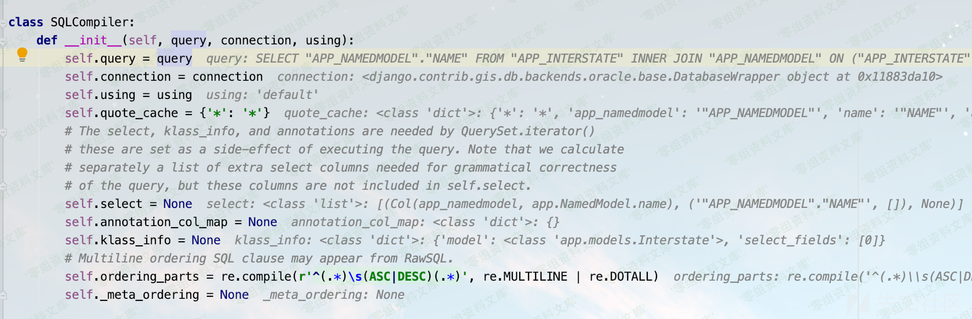 不知道为什么,用pycharm在as_oracle下断点的时候,第一次到达SQLCompiler的时候,pycharm不会在as_oracle函数中停下来,而是在第二次查询的时候才会停,但是经过测试确实是在进入SQLCompiler之前调用过as_orcle函数,可能是pycharm没有正确识别重载函数吧。之后template构造模版也因此进入到expression.py中的as_sql函数中进行字符串构造