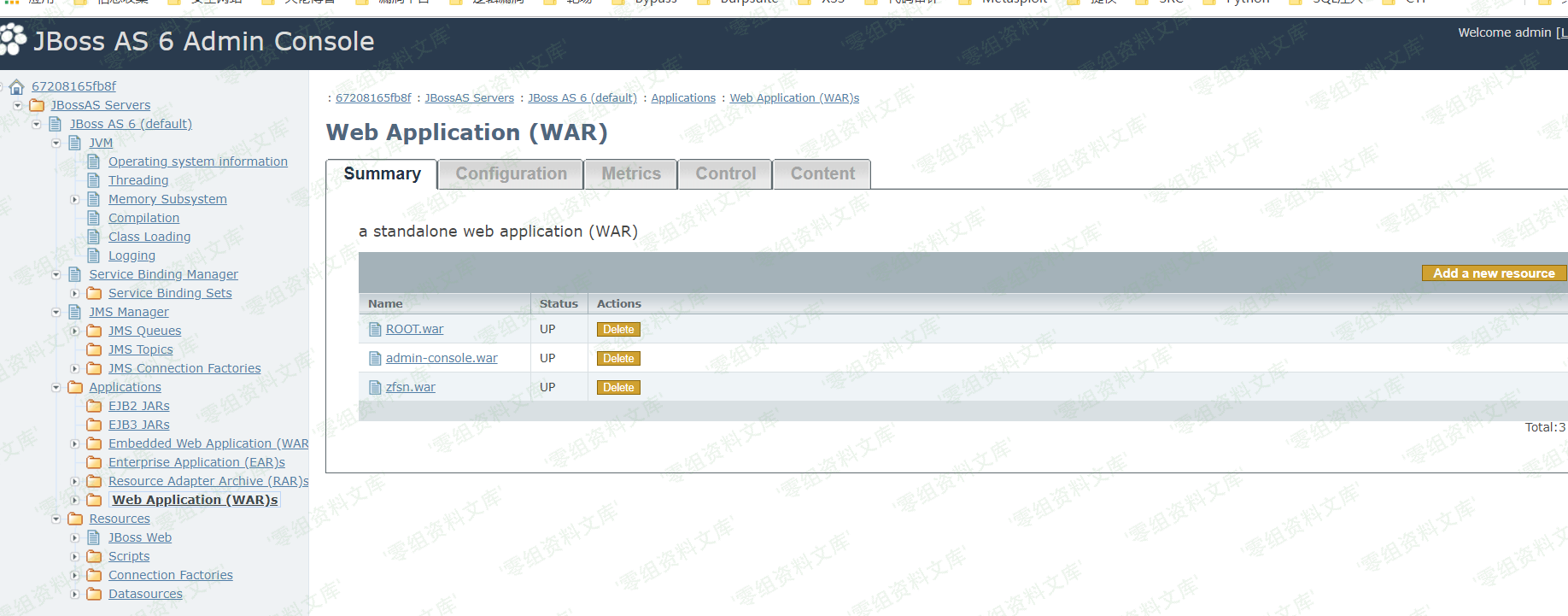 Administration Console 存在默认密码 admin admin 我们可以登录到后台部署war包getshell