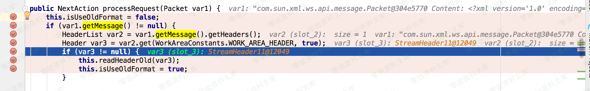 我们通过idea代码窗口内可以看到各个变量在调试运行后的值,var4的值就是接收poc的xml,在