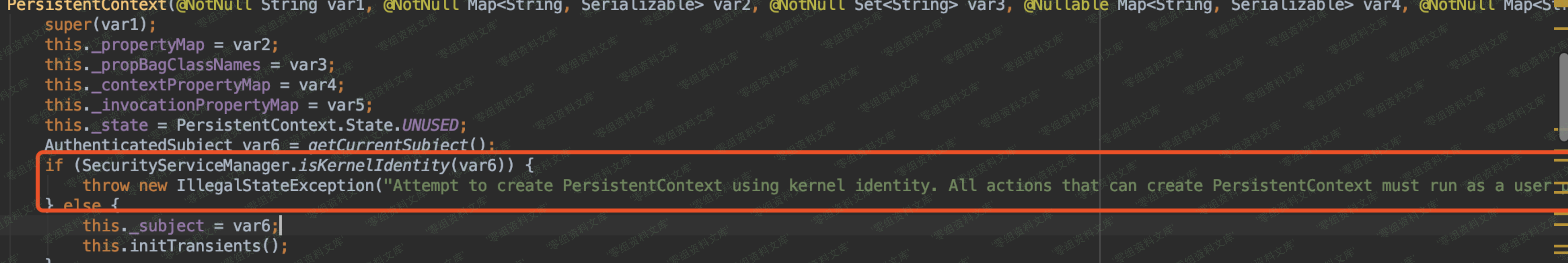 因为需要用到 PersinstenContext 这个类,因此序列化的时候肯定要将其实例化,但是在下图代码位置有个if检查。