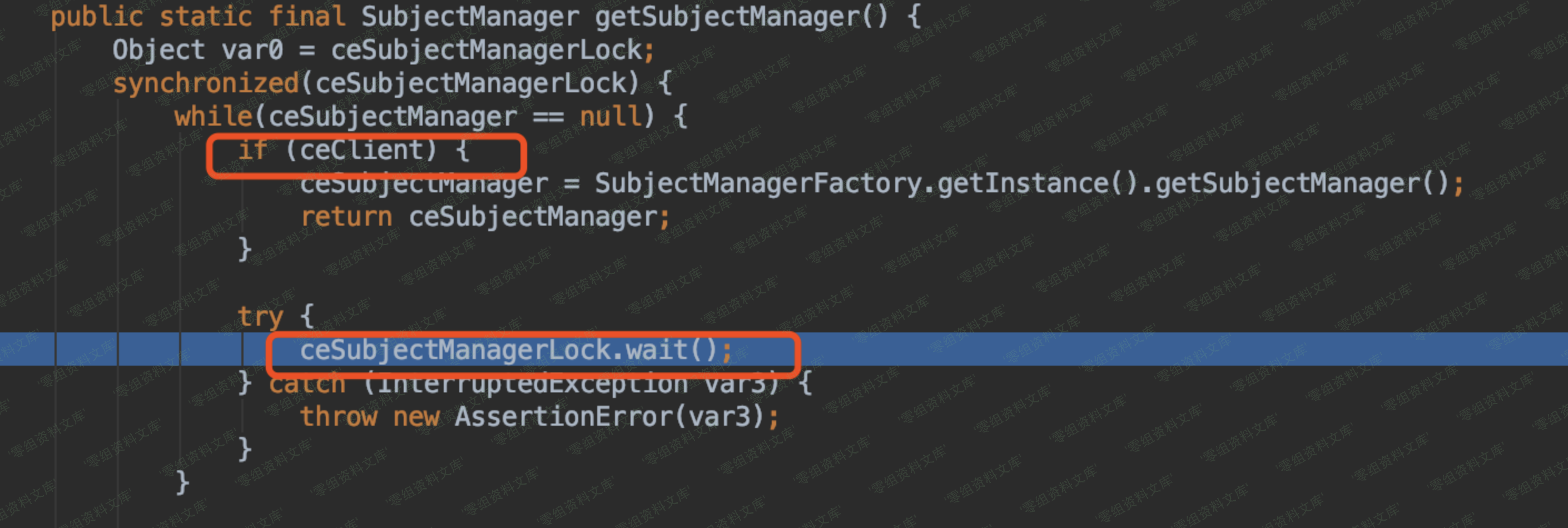 在这个类里面的 getSubjectManager 方法会有一个 ceClient 的判断,如果为fasle就不会直接返回 ceSubjectManager 对象,因此需要让他为 true 。