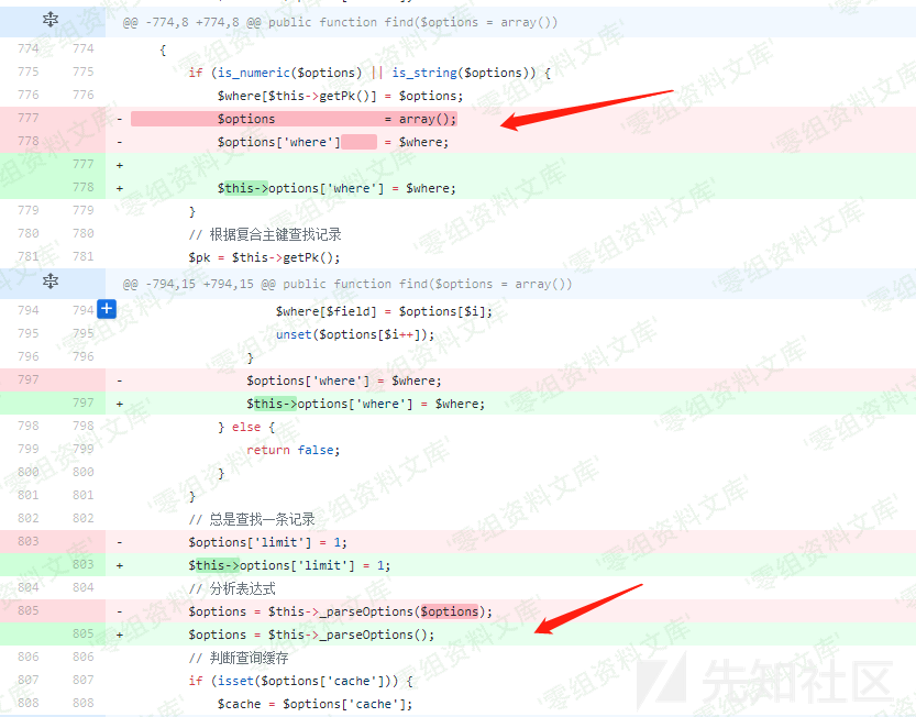 <= 3.2.3 ### 三、复现过程 **漏洞分析** 通过github上的commit 对比其实可以粗略知道,此次更新主要是在ThinkPHP/Library/Think/Model.class.php文件中,其中对于delete,find,select三个函数进行了修改。 delete函数  select函数  find函数  对比三个方法修改的地方都有一个共同点: 把外部传进来的$options,修改为$this->options,同时不再使用$this->_parseOptions对于$options进行表达式分析。