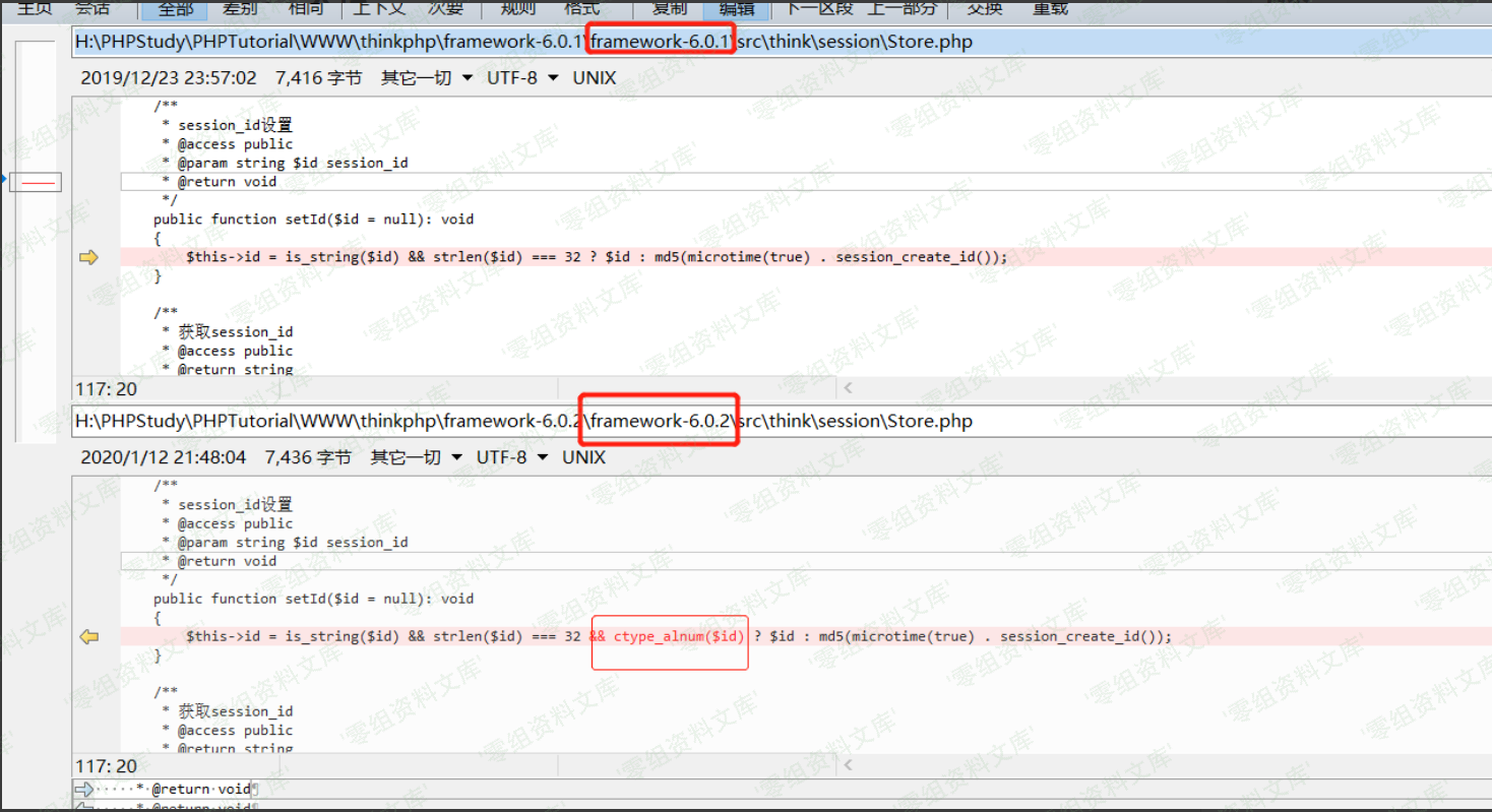 # Thinkphp < 6.0.2 session id未作过滤导致getshell ### 一、漏洞简介 ### 二、漏洞影响 Thinkphp < 6.0.2 ### 三、复现过程 漏洞分析 通过diff github上面的6.0.1和6.0.2的代码可以发现,6.0.1在设置session id时未对值进行ctype_alnum()校验,从而导致可以传入任意字符。  传入任意字符会有什么危害?一般来说程序可能会以session id作为文件名来创建对应的session文件,但是到目前为止这只是猜测。看一下保存session是怎么写的。 ```php public function save(): void { $this->clearFlashData();