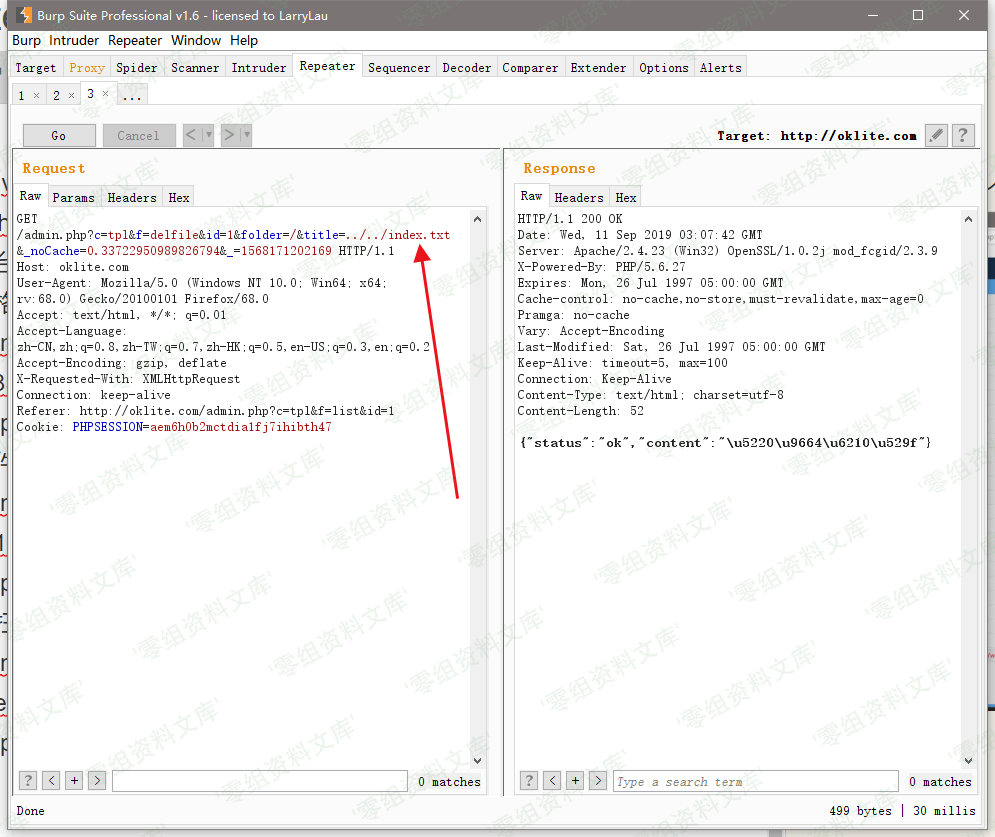 # CVE-2019-16132 OKLite v1.2.25 存在任意文件删除漏洞