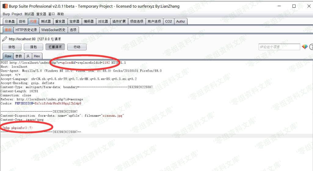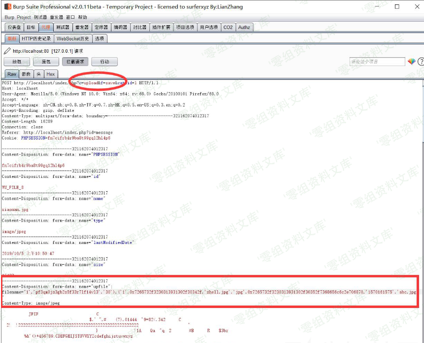 在线留言处上传一个图片并抓包,把文件名修改为: