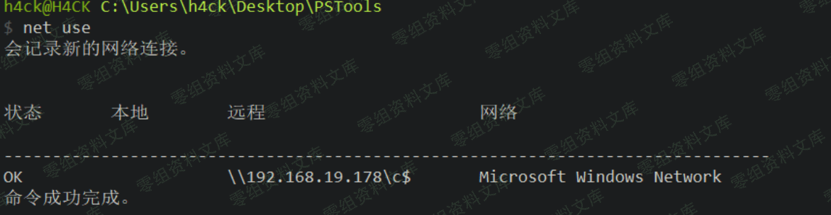 ###### 1、 若已建立 IPC$连接,无需再次输入账号密码,所有 pstools 工具可直接使用 net use //查看 ipc 连接状态