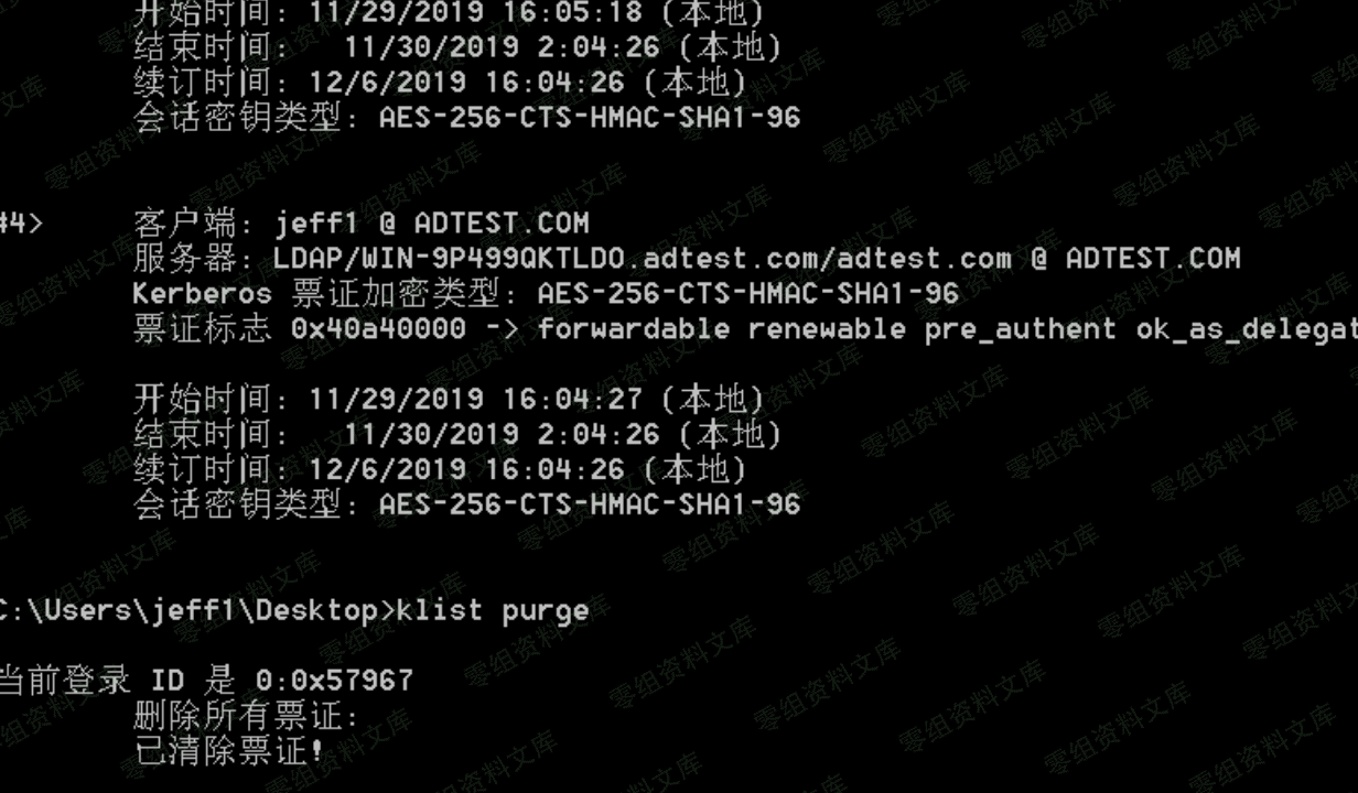 * 3、 使用 mimilatz 导入生成的 ccache 文件,导入之前 cmd 下使用命令 klist purge 或者在 mimikatz 中使用 kerberos::purge 删除当前缓存的 kerberos 票据