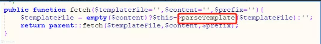 这里fetch函数的三个参数分别对应模板文件,输出内容,模板缓存前缀。利用时templateFile和prefix参数可以为空,在content参数传入待注入的php代码即可