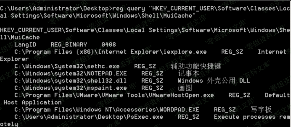 reg query “HKEY_CURRENT_USER\Software\Classes\Local Settings\Software\Microsoft\Windows\Shell\MuiCache”