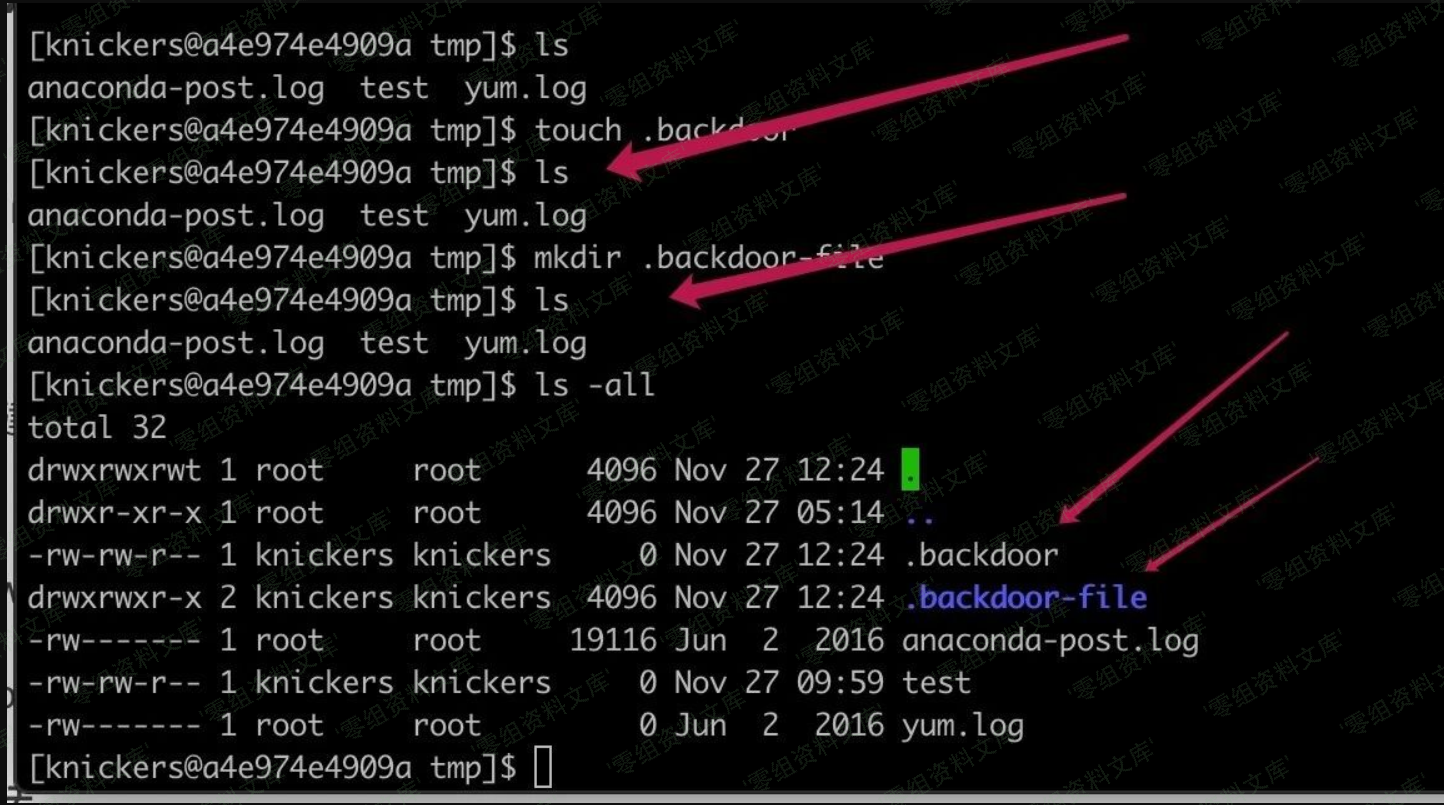 001-建立隐藏文件:文件夹棉花糖2021年7月21日发布关注私信050 # 建立隐藏文件/文件夹 “`bash touch .backdoor mkdir .backdoor-file “`  经常使用linux中会知道每个目录下其实都有.和..、分别代指的是当前目录和上级目录。 建立…文件也是一个比较好的隐藏方法。 © 版权声明文章版权归作者所有,未经允许请勿转载。THE END漏洞库 喜欢就支持一下吧点赞0赞赏 分享QQ空间微博QQ好友海报分享复制链接收藏