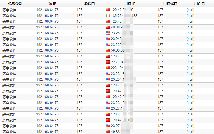 某天早上,小伙伴给我发了一个微信,说192.168.64.76 CPU现在负载很高,在日志分析平台查看了一下这台服务器的相关日志,流量在某个时间点暴涨,发现大量137端口的UDP攻击。