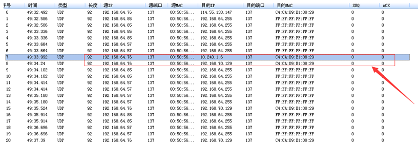 本地下载了IpTool抓包工具,筛选条件: 协议 UDP 端口 137