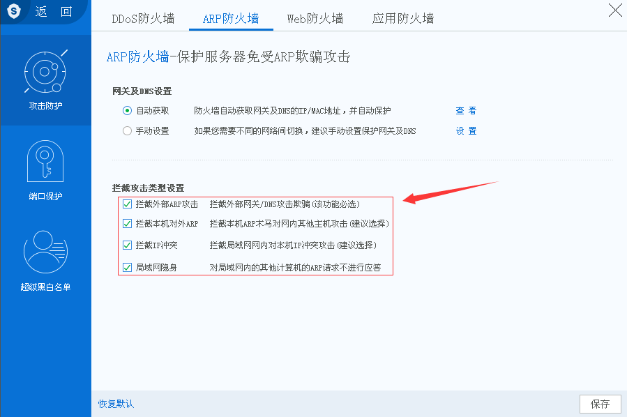 网络防火墙–攻击防护–ARP防火墙: