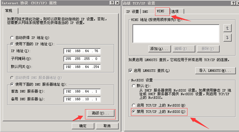 2)、禁用 TCP/IP 上的 NetBIOS