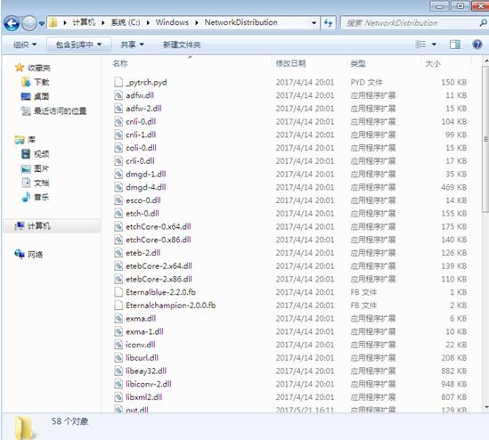2、使用各种杀毒软件查杀无果,虽然能识别出在C:\Windows\NerworkDistribution中发现异常文件,但即使删除NerworkDistribution后,每次重启又会再次生成。