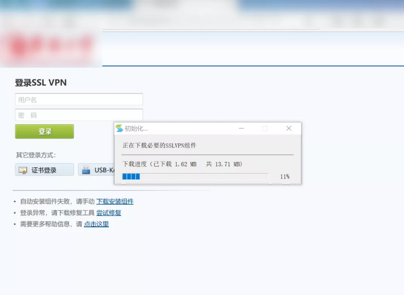 安装完之后访问VPN的页面,发现VPN会自动下载组件更新: