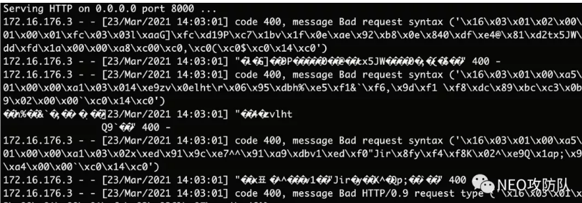 搭建起一个 HTTPS 环境后再次复现如上请求,服务端收到日志: